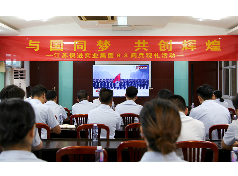 2025年9月3日上午,江苏俱进实业集团在下属江阴创瑞电力隆重举行纪念中国人民抗日战争暨世界反法西斯战争胜利80周年观礼活动。集团董事长朱跃强带领各部门负责人及职工代表齐聚一堂,通过观看天安门广场纪念大会直播、回顾抗战光辉历程、缅怀革命先烈,共同铭记这一具有重大历史意义的时刻。